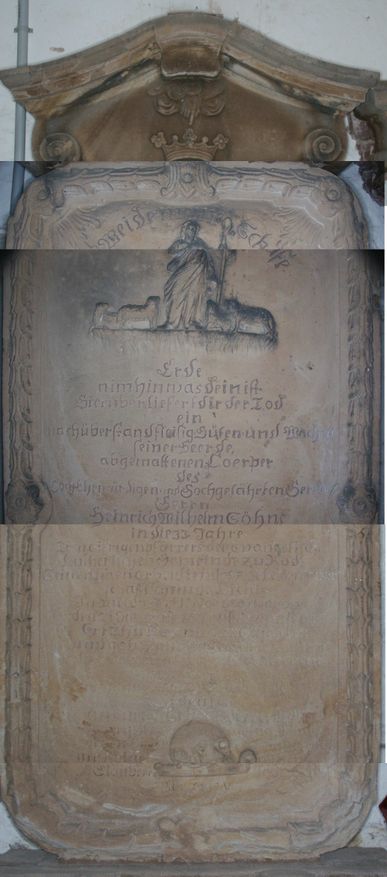 Seine lorbeerenumrahmter Grabstein mit einem Relief des guten Hirten ist noch in der Kirche von Rhodt erhalten: