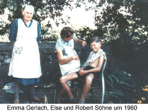 Am 12.3.1938 heiratete er in Bad Homburg meine Mutter Emma Else Gerlach (vgl. Datei wilhelmelse1.pdf). Diese wurde am 5.11.1911 in Römerhof im Kreis Euskirchen geboren, wo ihr Vater Robert Gerlach Gestütwärter auf dem Nonnenhof war. Ihre Mutter war Emma geb. Körtge. (Stammbaum siehe Datei wilhelmelse.doc)